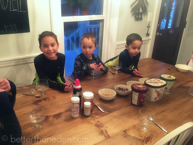 Sounds like a great idea for the dish!! And your boys are showing great restraint! I think mine would be toppling the dish...a "campfire" indoors is such a novelty!